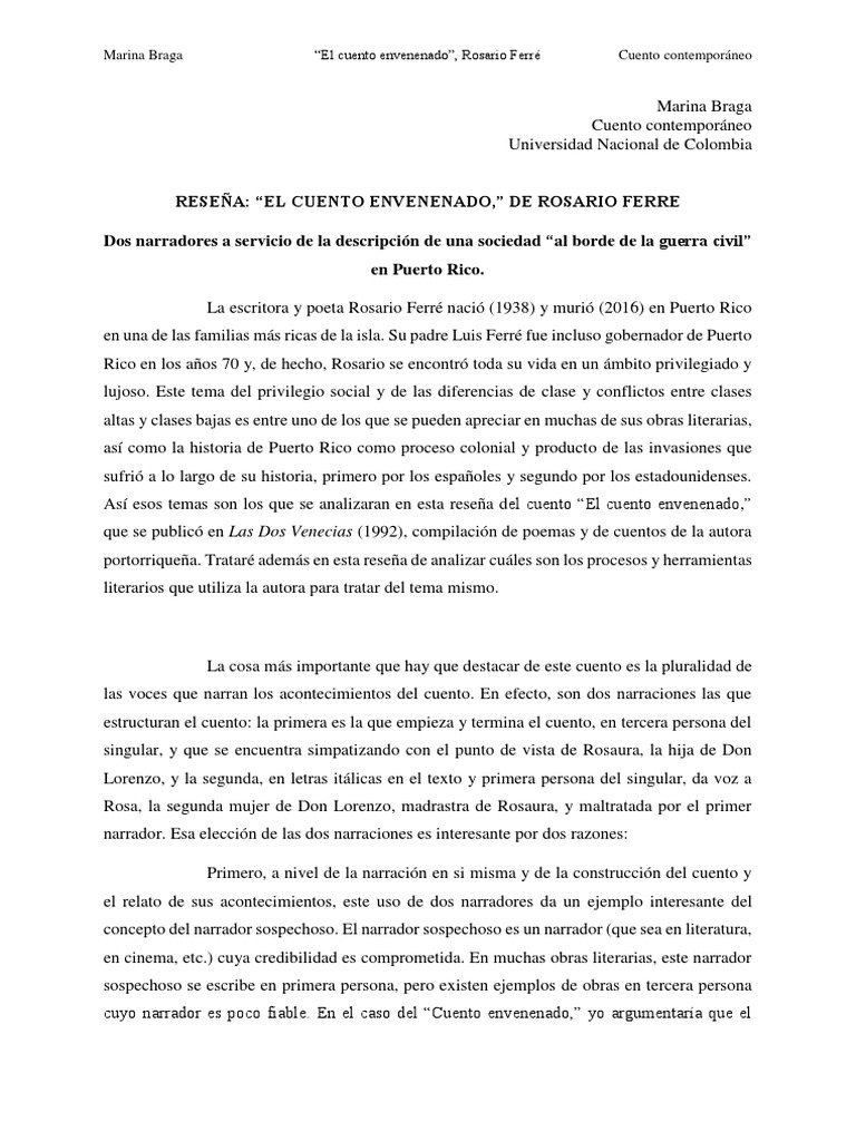 El cuento envenenado resumen. Using Marilyn Gaddis Roses concept of stereoscopic reading the essay places two autonomous but interrelated texts in a theory-informed relationship that renders them as one. 821134278-32 DIE Ferr Rosario El cuento envenenado. Al ir a cenar a un restaurante cercano al hotel conoce a un cura yugoslavo que le informa que el papa solo recibe gente los das martes.