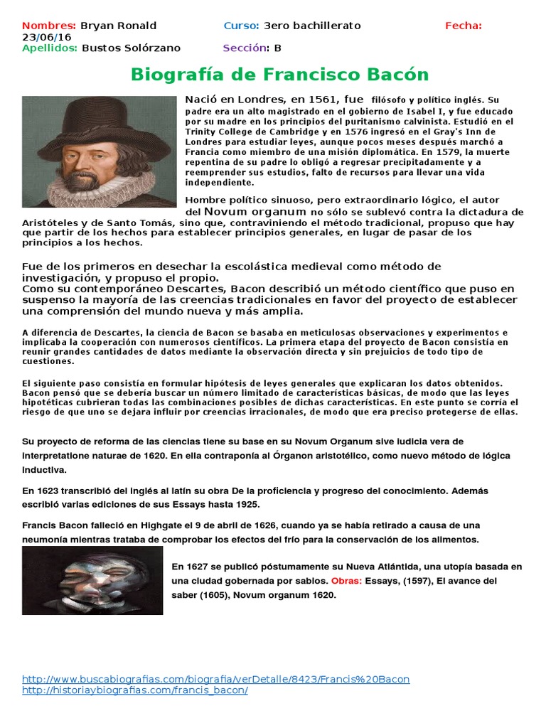 Pensamiento De Francis Bacon Resumen Videos Ejercicios