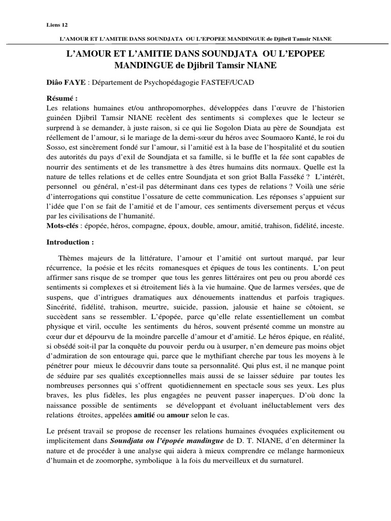 Dcontextualisante vrits contradictoires rseaux problmes politiques contemporains. Tweet Share on Twitter Share on LinkedIn. Dans lattente des travaux des archologues sur les grands sites dAoudaghost de Koumbi Saleh empire du Ghana et de Niani empire du Mali il recueille le geste de Soundiata Keita fondateur de lempire du Mali qui est publie en 1960 Soundiata ou lpope mandingue.